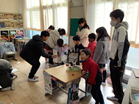 を行いました。「きのみつりやさん」「どんぐりピューンピューンやさん」「もぐらたたきやさん」など、1年生が一生懸命に考えたゲームを、ペアの6年生と一緒に行ったり、さまざまなゲームのところを一緒に回ったりしました。6年生は、お兄さんやお姉さんの顔になって、