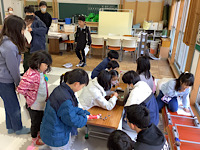 を開きます。いろいろな木の実を使って、1年生が、さまざまなゲームを考えました。1年生の掲示板には,案内が貼られています。今日の読書タイムには、6年生に招待状を渡しに行きました。明日が待ち遠しいですね。