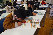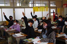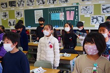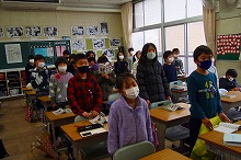 久しぶりの雨です。 ひんやりしますね。 ◇4年生 外国語活動では、シェイン先生の単語を聞き取りイラストを完成させます。 楽しみながら覚えていきます。◇2年生 歌集の「ウンパッパ」を練習中です。 窓を開けていつも以上に換気をし、距離をとって5分だけ練習します。 集中して歌うよ。 音楽では、合奏する楽しさを味わおうというめあてで「チャチャマンボ」を練習中です。 マラカスと木琴のアンサンブル。1拍目に休符があると難しいね。 ◇5年生 算数では、「速さの求め方を知ろう」というめあてで学習中です。 保護者のみなさん、「は・じ・き」なつかしいですよね。 ◇3年生 社会では、地図帳の見方を勉強しました。 まず、「さくいん」のページを開き、調べたい地名を探します。 その横には数字やカタカナが書いてあります。 さくいんで「半田」を見つけ、「半田も書いてある~。」と大喜びでした。 地図帳の見方もわかったので、これから活用できます。◇6年生 社会では、「戦後の日本経済の発展について知ろう」というめあてで学習しました。 日本の歴史を勉強し、とうとう戦後まできました。 令和、平成、そして昭和。「昭和の時代」も小学生から見たら遠い昔です。 高度経済成長について学びました。 すごくたくさんの人が手を挙げています。やる気スイッチしっかり入ってます! ◇1年生の掲示板です。 「あいてのきもちをかんがえる」 「みとめられる こころ」 「されていやなことはしない」 そして、子どもたちの素敵な言葉であふれています。    |