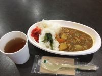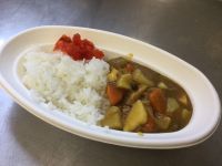 今日のカレーは、にんじんのバター煮とサツマイモの素揚げがトッピングです。