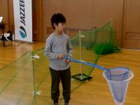 「上に向けるより、まっすぐの方がよく飛ぶよ」自分たちで工夫をしながら飛ばしていました。
