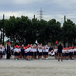 です。速やかに集まり、国歌斉唱、校長挨拶、児童会長挨拶と続きました。団長の力強い選手宣誓、赤組白組に分かれての「なんだなんだコール」。競技に向かうための気合いを入れることができました。