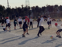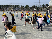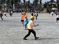 を行いました。鬼に捕まえられないように、運動場を走り回っていました。鬼に捕まえられた人達は、クイズに答えられたら解放されます。先生たちも一緒になって楽しんでいました。