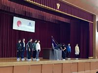 を行いました。令和7年度後期児童会長から令和8年度前期児童会長へと、校旗が引き継がれました。宮池小学校を更によりよい学校にするために、力を合わせてがんばっていきましょう。