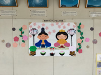です。図書館前の掲示板には、図書ボランティア虹の会の方による、華やかなお雛様の飾りが飾られていました。保健室前には、養護教諭による耳に関する説明が、イラストとともに飾られていました。給食にはひなあられが出て、子どもたちは大喜びでした。おいしくいただきました。