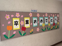 19日(木)の卒業式に向けて、さまざまなところに、6年生の皆さんへのメッセージがありました。園芸ボランティアさんが作った、写真撮影に使えるグッズもありました。皆さんの温かい気持ちが伝わってきました。