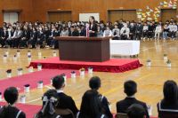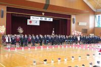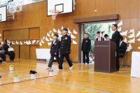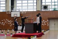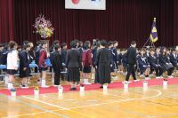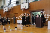 5名の来賓をお招きしました。6年生は、入場から証書授与、呼びかけ、歌、退場まで、