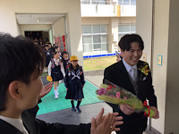 が、最後の学活を終えて出てきたところを、教職員で見送りを行いました。その後6年生は、昨年度40周年を記念してPTAから寄贈された「大きな卒業証書」や縦看板、花壇の前で、親子、友達、先生たちと記念撮影をしていました。いつまでも心に残る、思い出深い一日となったことでしょう。卒業、おめでとう!次のステージに向かって羽ばたいてください。先生たちは、いつまでも皆さんを応援しています。