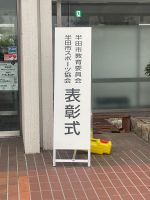 「半田市さわやか教育展」に出品した、けやき組・さつき組一人一人に、賞状を渡しました。名前を呼ばれると元気のよい返事をし、賞状を渡すとお辞儀をし、「ありがとう」と言うことができました。