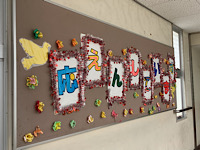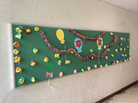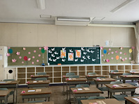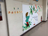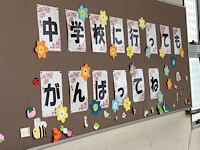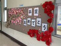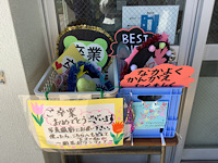 19日(木)の卒業式に向けて、さまざまなところに、6年生の皆さんへのメッセージがありました。園芸ボランティアさんが作った、写真撮影に使えるグッズもありました。皆さんの温かい気持ちが伝わってきました。