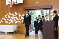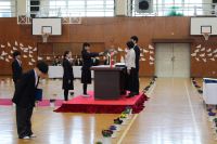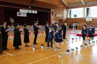 5名の来賓をお招きしました。6年生は、入場から証書授与、呼びかけ、歌、退場まで、