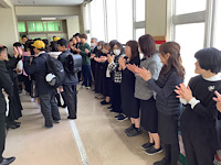 が、最後の学活を終えて出てきたところを、教職員で見送りを行いました。その後6年生は、昨年度40周年を記念してPTAから寄贈された「大きな卒業証書」や縦看板、花壇の前で、親子、友達、先生たちと記念撮影をしていました。いつまでも心に残る、思い出深い一日となったことでしょう。卒業、おめでとう!次のステージに向かって羽ばたいてください。先生たちは、いつまでも皆さんを応援しています。
