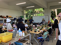 参加者は、スタッフ含め77名!!たくさんの子どもたちが参加しましたが、学生スタッフさんが大勢参加してくださったので、手際よく工作を進めることができました。