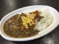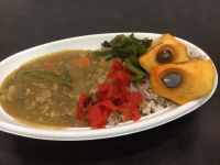 今日のカレーは、にんじんのバター煮とサツマイモの素揚げがトッピングです。