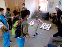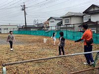 「上に向けるより、まっすぐの方がよく飛ぶよ」自分たちで工夫をしながら飛ばしていました。