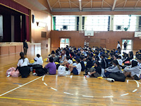 を行いました。校長からは何よりうれしかったこととして、6年生104名全員で行けたこと、2日間、みんな元気で過ごせたことを伝えました。また、修学旅行に関わってくださった方への感謝を忘れないようにと話しました。6年生の先生からは、今回成長できたことをこれからに生かしていこうという話がありました。