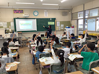 今日の個人のめあてを「はやくけいさんする」「けいさんのしかたをせつめいする」「まちがえずにけいさんする」の三つの中から決め、各自でそれぞれのめあてに向かって取り組みました。今までの学習の振り返りも蓄積されており「たしざんマスターになろう」のワークシートに、ご褒美のシールがたくさん貼られていました。