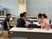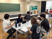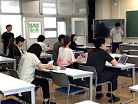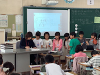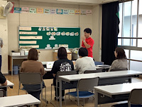 1年1組の授業について、なかよしホールにて、B部会の教職員で