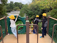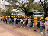 へ秋を探しに行きました。まつぼっくりや色付いた葉っぱ、どんぐりなどを見つけ、袋いっぱいに秋を探すことができました。今後は、集めた木の実や落ち葉を使って、工作をしたり遊んだりするそうです。