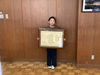 給食時に表彰を行いました。今回は、マラソン、ポスター、バレーボール、絵画、駅伝、造形でよい成績を収めた人達と、半田市教育委員会表彰を受けた人達です。よくがんばりました。おめでとうございます。