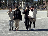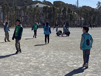 1年1組が、生活科「ふゆをたのしもう〜もっとあそびたいな〜」「昔の遊び」「たこあげ」をしていました。穏やかな陽気で、各自で作った凧が、気持ちよさそうに空に舞っていました。