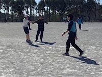 大放課1・2年生運動場総務委員会主催の「アイテム鬼ごっこ」を行いました。鬼に捕まえられないように、運動場を走り回っていました。鬼に捕まえられた人達は、クイズに答えられたら解放されます。先生たちも一緒になって楽しんでいました。